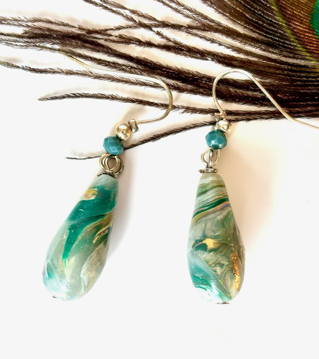 • Matériaux : argile polymère marbrée, perles de verre Tchèque, métal argenté